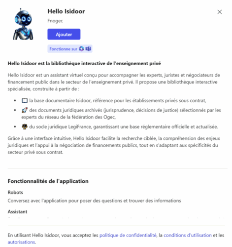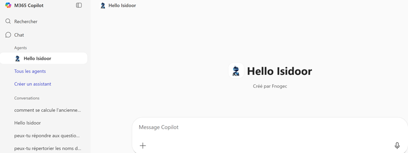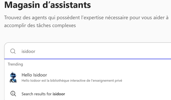 De plus, vous pouvez ajouter des agents comme « Hello Isidoor » en cliquant sur Explorer les agents, vous aurez alors accès au magasin :