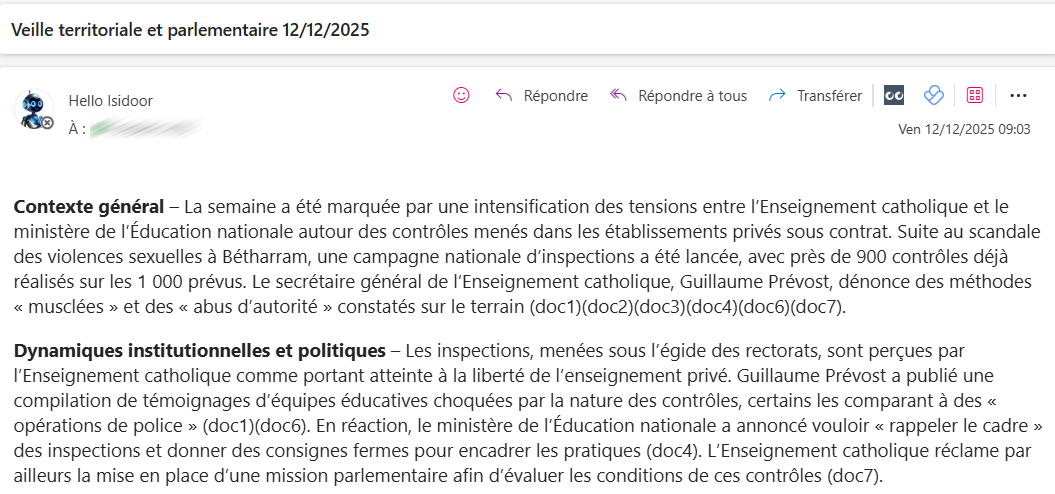 Avec cette revue de presse personnalisée générée par IA, InfoLab se place plus que jamais au cœur de l’actualité, pour vous aider à comprendre, anticiper et agir, en particulier dans un contexte où l’Enseignement catholique est au centre de nombreux enjeux.