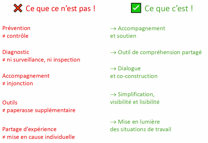 Attention l’action de prévention n’est pas un audit des établissements. Il est important de rappeler les fondamentaux de cette démarche :