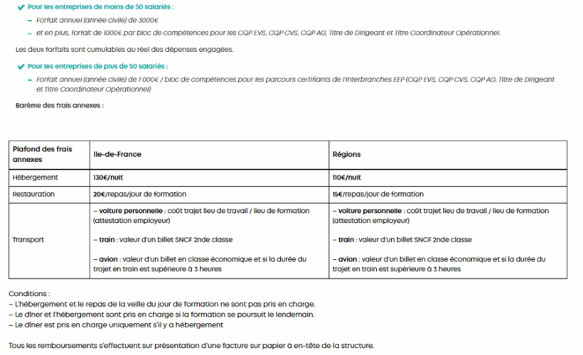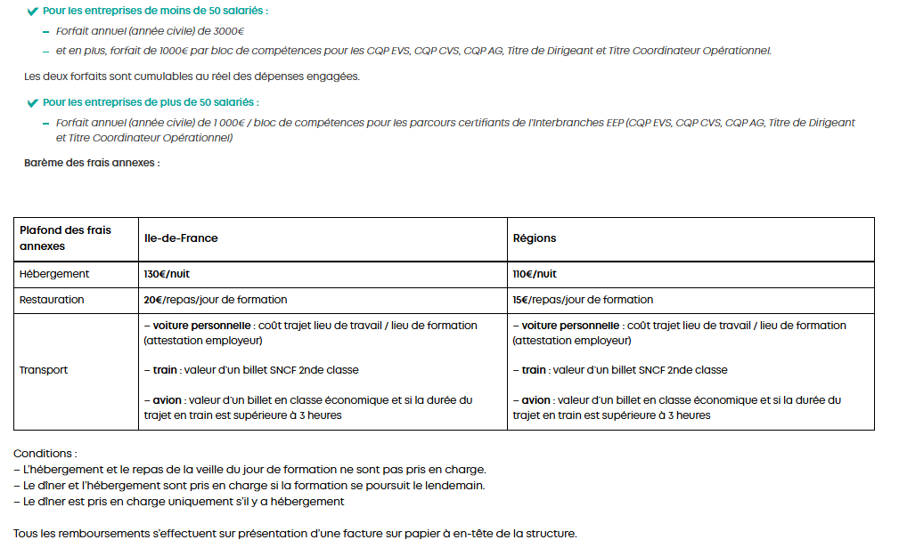 - mais aussi les frais annexes et les certifications portées par l’Interbranches EEP (comme les CQP de vie scolaire, le CQP Attaché de gestion et les Titres portés par le Sgec).