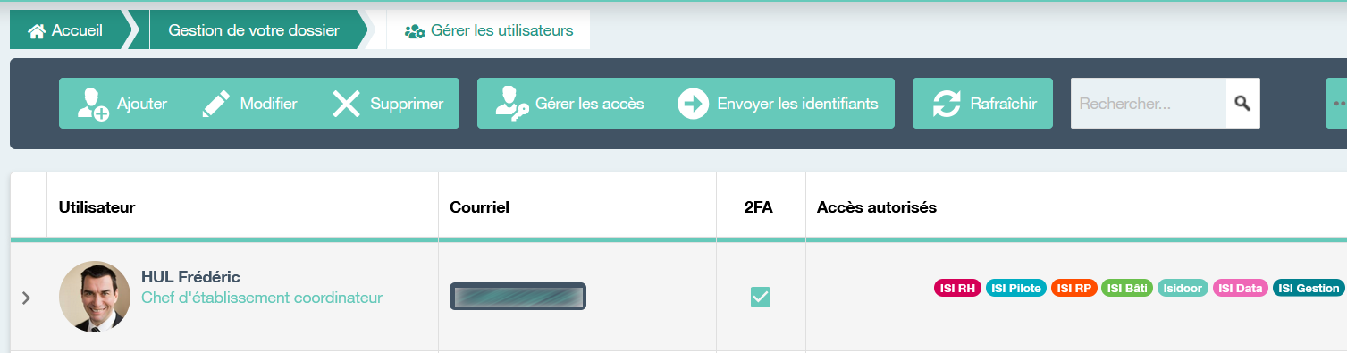 A partir du Portail Isidoor : Gestion de votre dossier -> Gérer les utilisateurs